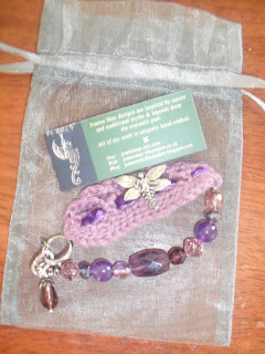I did this one 1st without the beads. The other day my bracelet arrived from Joanne. Wrapped in purple. :)