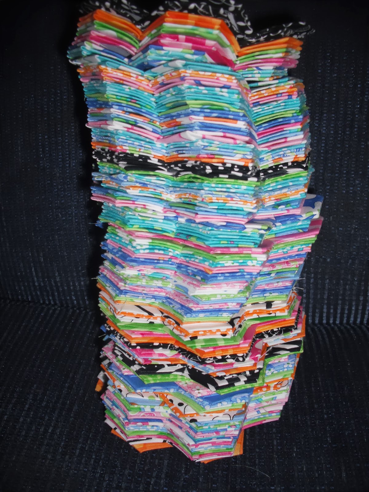 I can't remember how many flowers the quilt needed but here is the stack of them.