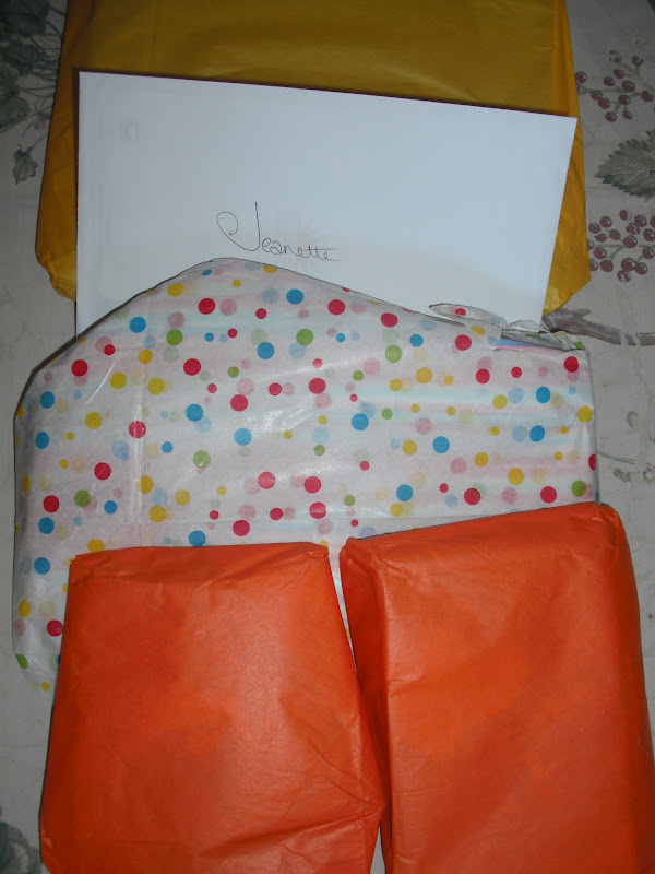 My online swap group recently swapped again. This time our swap was for Spring. My parcel arrived today from Joy. So exciting to get a parcel from the mailman. It's usually bills. :( I opened the bag to find these: