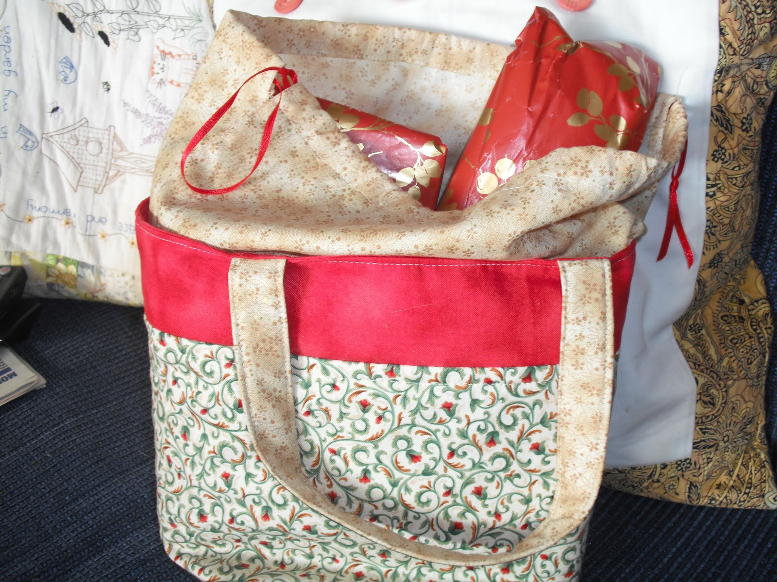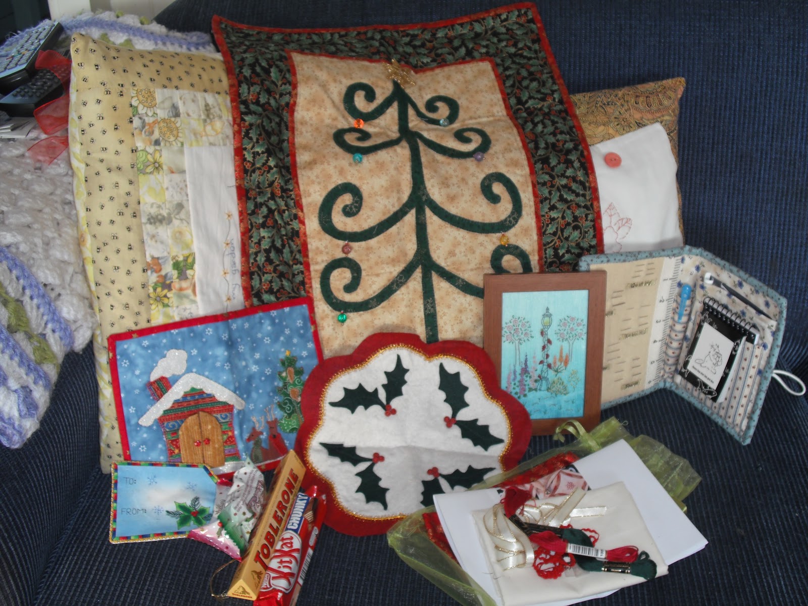 Lovely fabrics thanks Cheryll. Our online group did a 6 item swap for Christmas & this is what Kate sent me,