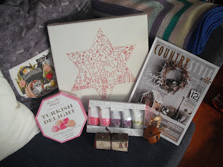 Finally Christmas day dawned - 5am i was poked awake . Oh well may as well get up & open all those lovely gifts awaiting me. First up was my Santa Sack from Kaye in the Santa Sack swap hosted by Cheryll. My beautiful sack full of goodies.