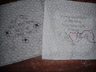 My day started early. I had stitcheries finished last month from a Gail Pan Christmas pattern that i didn't get back to sewing together. All the strips had been cut out as well. Yesterday was the day i decided. Plans didn't quite get fulfilled though. Some reverse stitching delayed completion. I did get it finished though, to the stage where all i need to do is quilt it, before i left for school pick up.