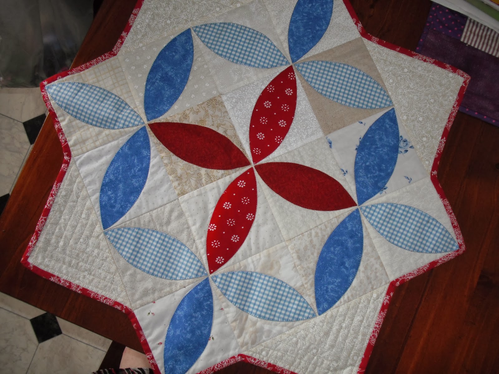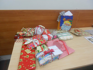 Some time ago it was decided at our patchwork group to make a quiz block. Wednesday night last week was the designated night & we learnt how to pin the pieces of fabrics to the foam squares. They have to be done a certain way for the puzzle to work. It was an awkward thing to sew fabrics around but it's such fun to play with. :)
