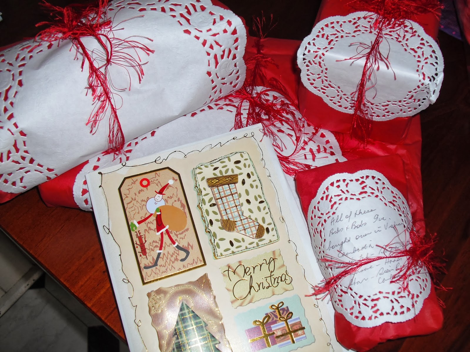 Chookyblue. I accidently opened 1 of the presents a little early as i thought it was the ornament package. The 2 lovely ornaments arrived a few days after the parcel & i found out then i was supposed to wait. Oh well.