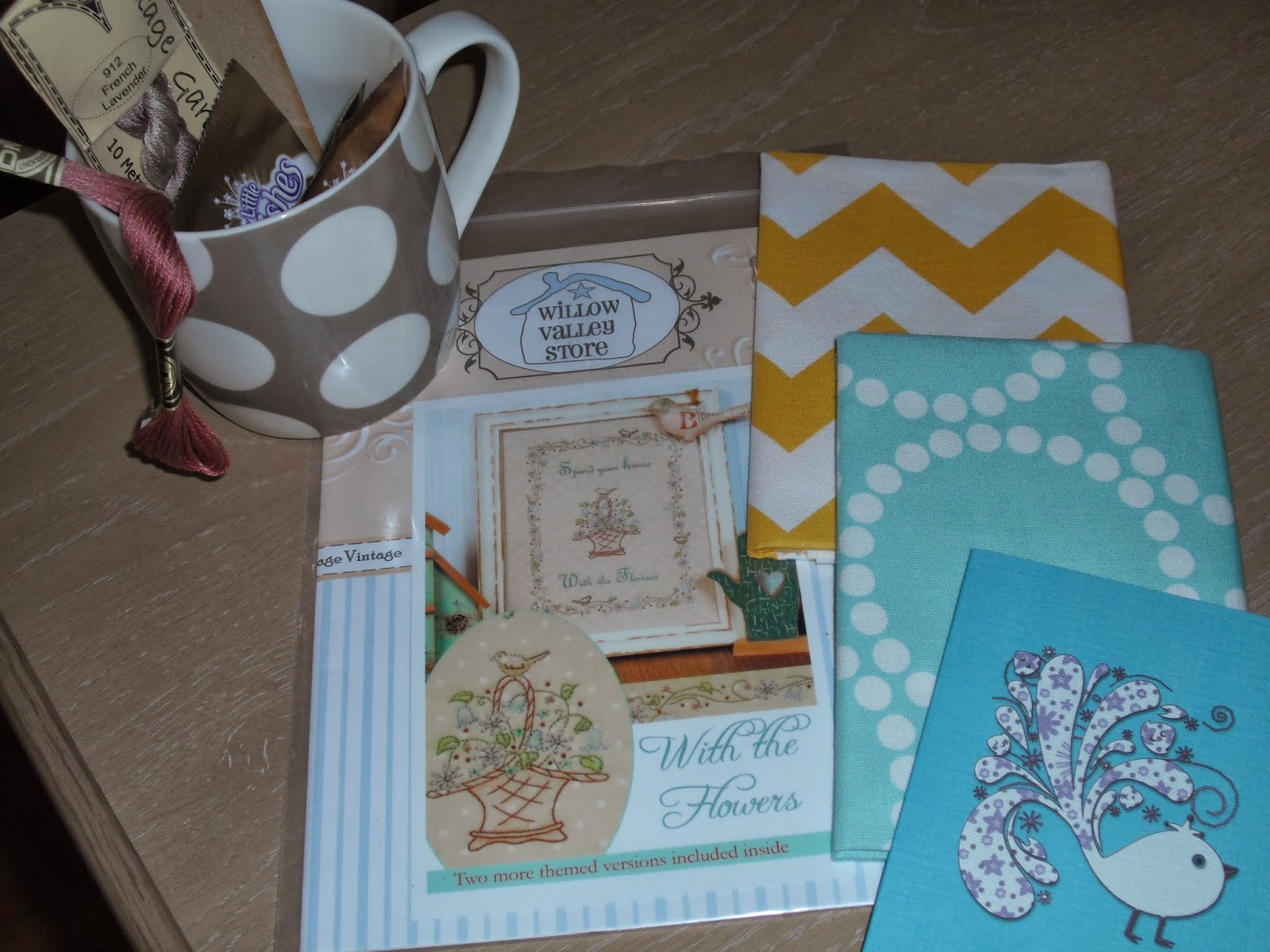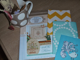 Gorgeous bag(in my favourite colour too. :)) & cross stitch gift from Lyn(no blog) for my birthday in