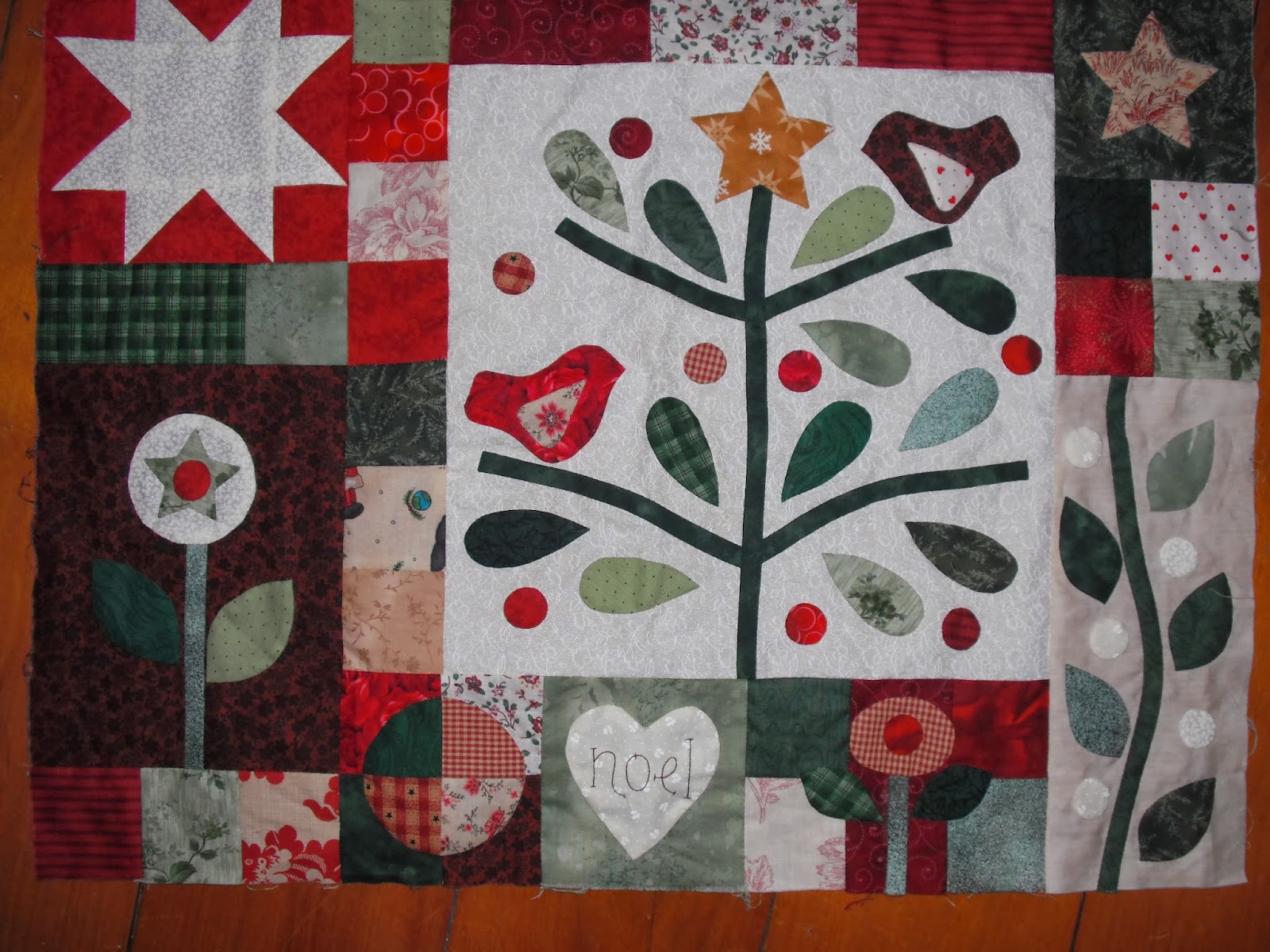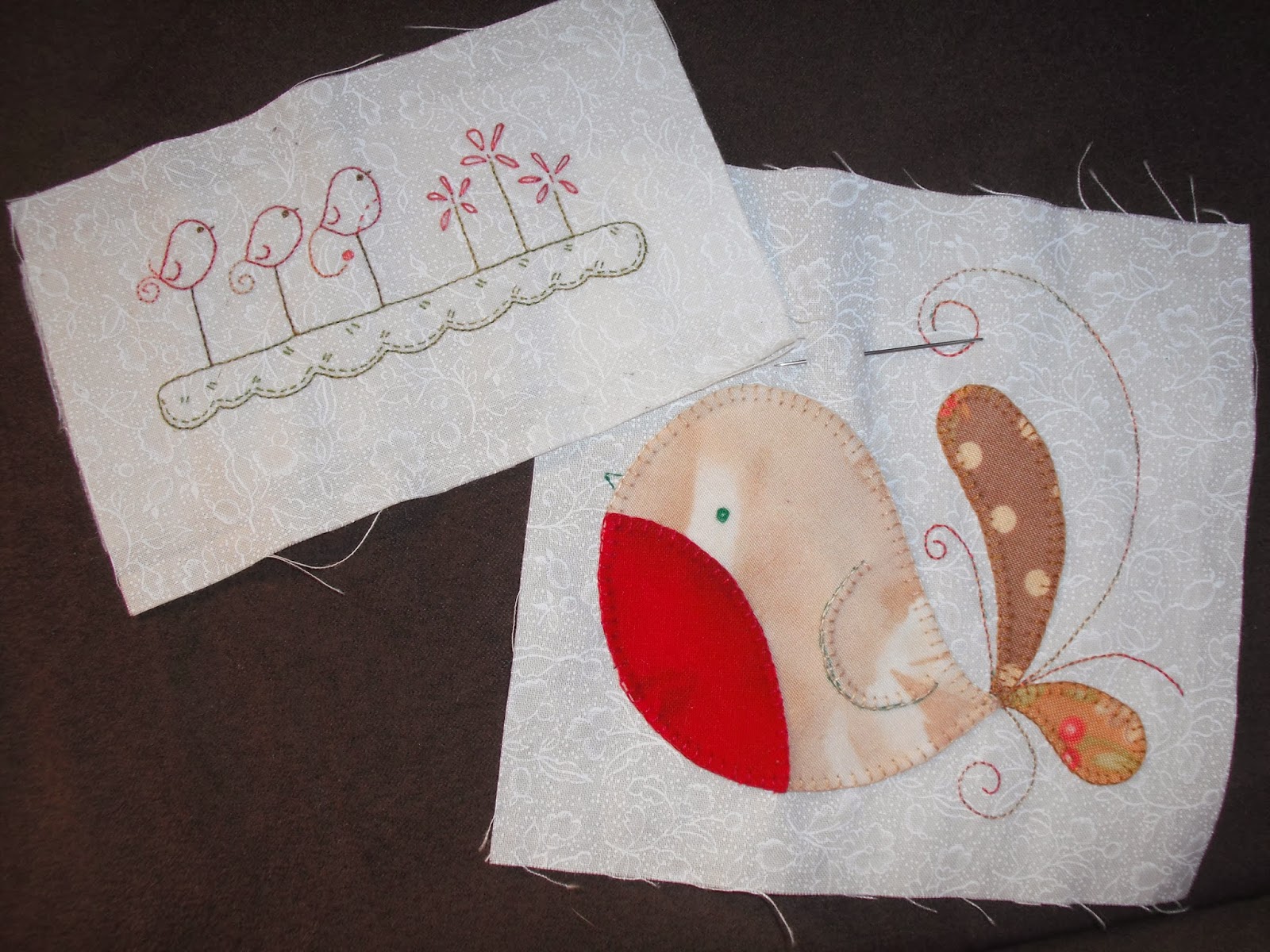I did the embroidery on these from Michele's BOM Fellowship Of The Flowers. They need to have beads & sparkly wool added yet. I'm trying to find sparkly wool similar to what Michele has used . Lastly i moved onto block 6 of Tail Feathers, a BOM put out a few years back by Natalie of Cinderberry Stitches.