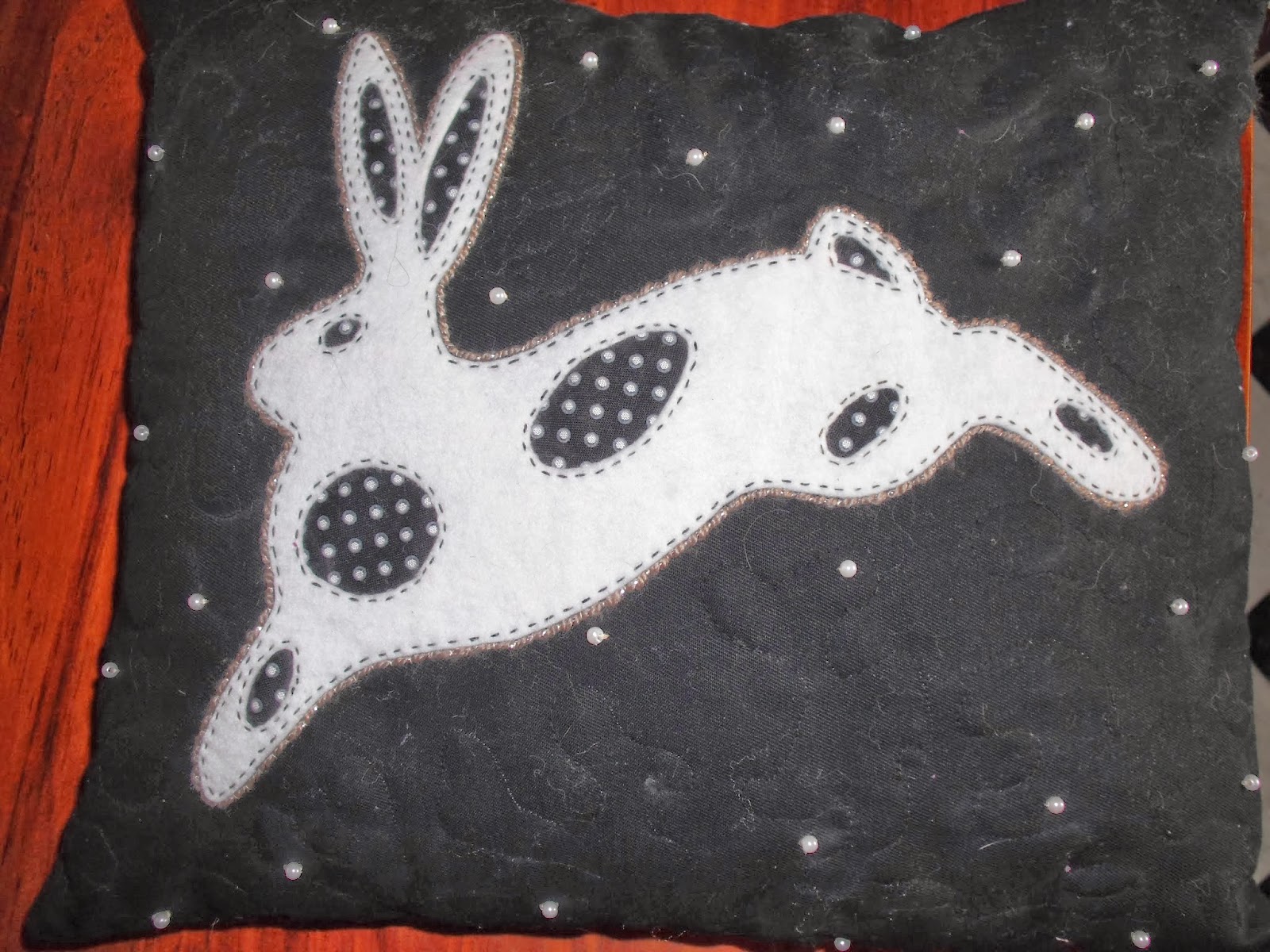 the bunny cushion from Michele's new book. After that is was out to coffee & cake with my daughters & oh so adorable grandson. Coming home we watched Supernatural whilst i sewed the gap closed in the caddy lining then stuffed & sewed the gap closed in the bunny cushion. Time for tea then back sewing.