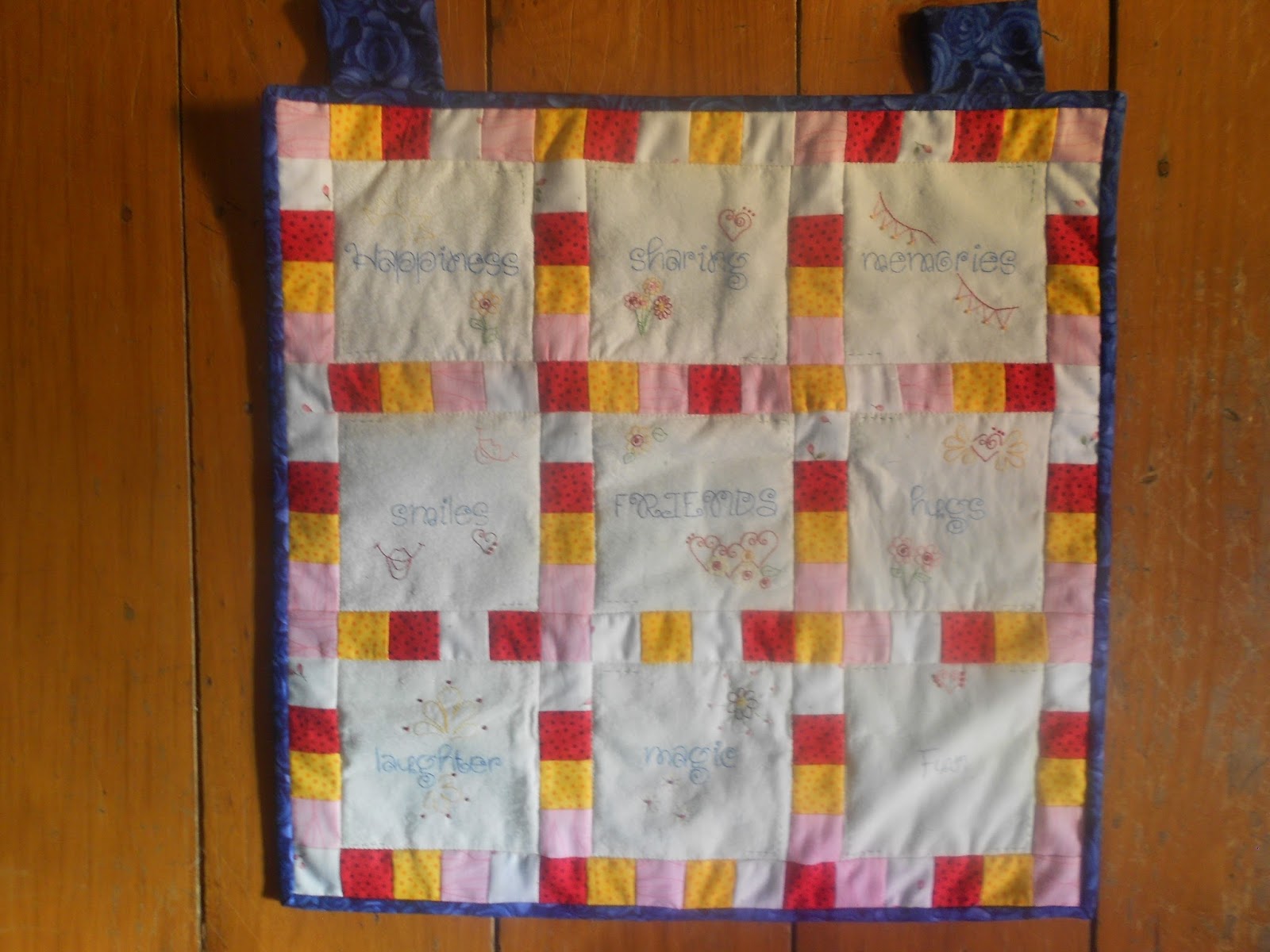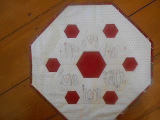 I made an early start joining in Friday Night With Friends.. I'd started this little wallhanging Wednesday but gave up in frustration of trying not to have matching colours together. I gave up & finished it with matching colours together.
