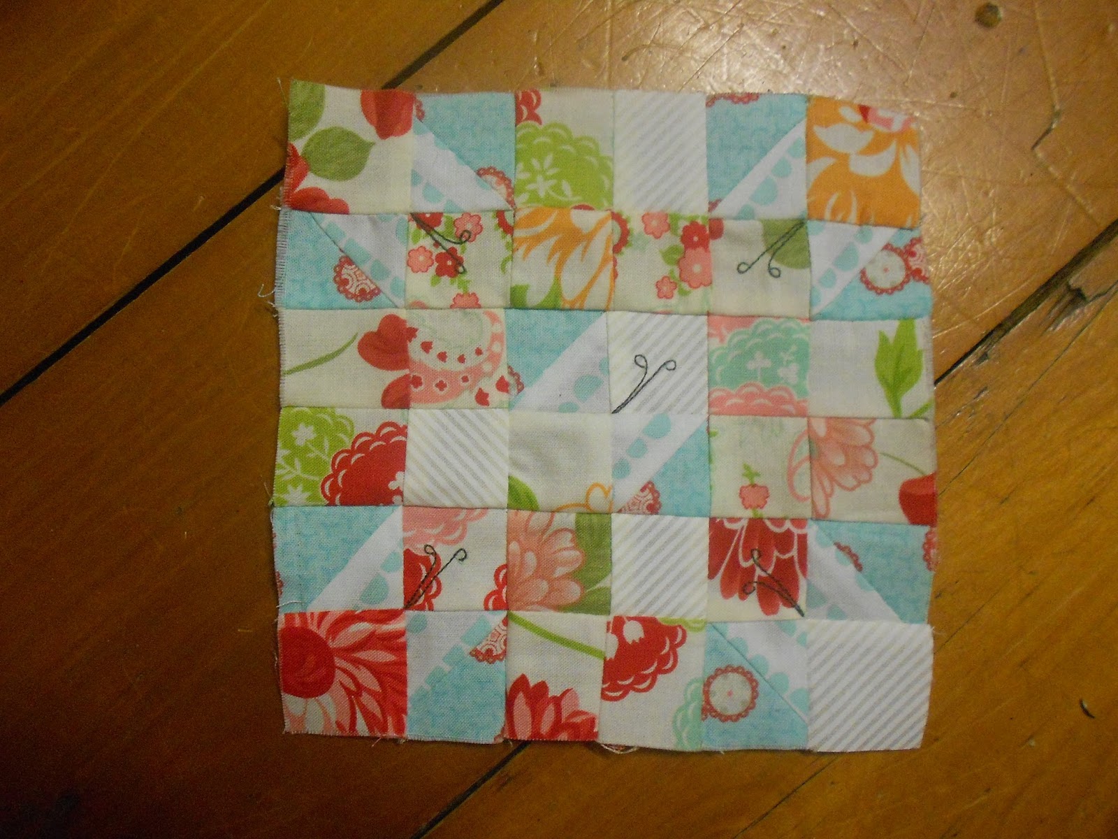 I made an early start joining in Friday Night With Friends.. I'd started this little wallhanging Wednesday but gave up in frustration of trying not to have matching colours together. I gave up & finished it with matching colours together.